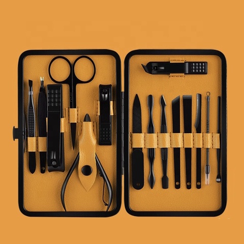 Tagliaunghie per lucidatura nera in acciaio inossidabile di alta qualità Kit per toelettatura strumenti per la cura delle unghie Manicure Pedicure Set custodia per uomo donna