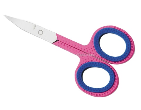 Herramienta de belleza de silicona rosa, mango de acero inoxidable curvo preciso, tijeras para depilación de cejas y cutículas de uñas