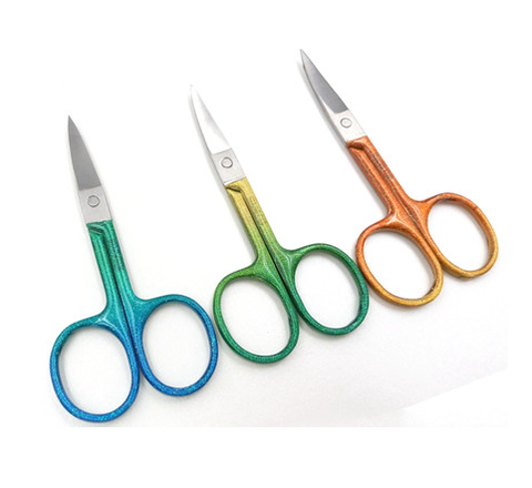 Tijeras de pelo de cejas de punta fina antioxidante de calidad, tijeras de corte de estilo de belleza de titanio arcoíris de acero inoxidable